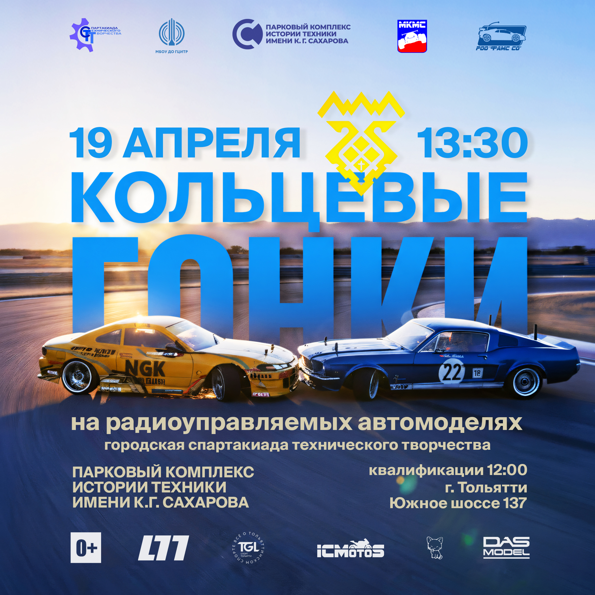 19 апреля 2026 года в Парковом комплексе истории техники им.К.Г.Сахарова состоятся соревнования по кольцевым гонкам на радиоуправляемых моделях, в рамках городской Спартакиады технического творчества. К участию приглашаются учащиеся образовательных учреждений г.о.Тольятти. Спортсмены в возрасте до 11 лет участвуют в зачете «Junior», спортсмены в возрасте от 12 лет участвуют в зачете «12+». Заявки на участие: https://forms.gle/vDeN2ZjxXX8gKKa1A, заявки на бумажном носителе предоставляются участниками в день соревнований. Подробнее об условиях участия и программе соревнований здесь. Ждем вас на гоночной трассе автомодельного комплекса МКМС по адресу: г.Тольятти, Южное шоссе, 137.